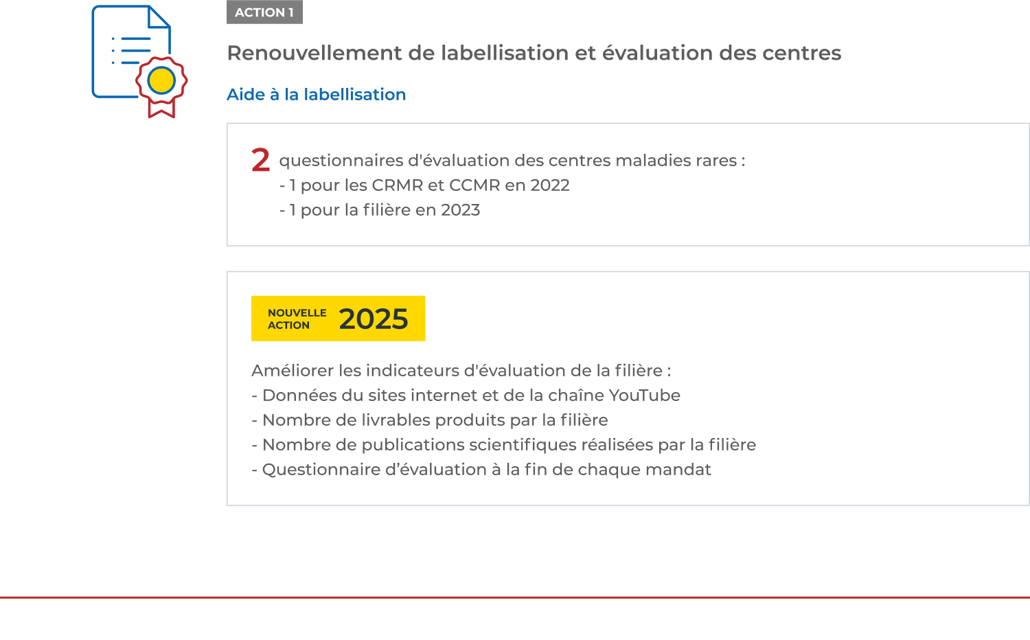 Veille, mise à jour, harmonisation, lancement des AAP, traduction, publication, intéraction avec l'HAS, aide de la filière
