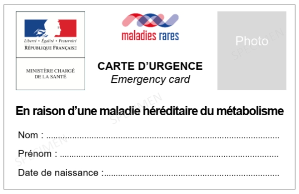 Les Cartes Urgences ont été élaborées sur un modèle commun validé par le Ministère de la Santé et en collaboration avec les médecins des réseaux labellisés et les associations de malades. La structure est commune à toutes les filières de santé maladies rares, le format type « carte de crédit », permet d’être rangé dans le portefeuille ou le porte-cartes du patient afin d’être facilement consultable lors d’une situation requérant les services des Urgences.